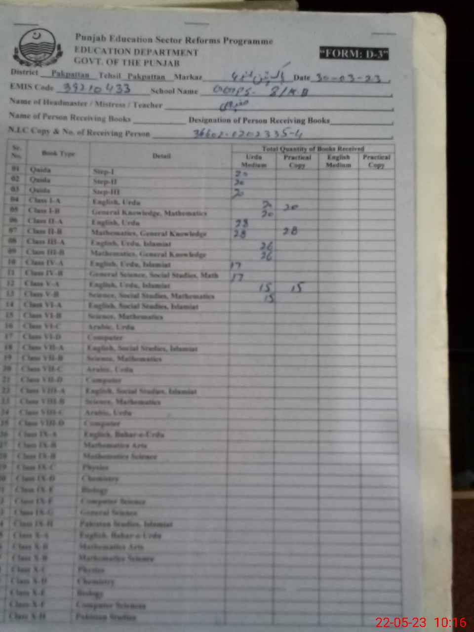 | EMIS Code: 39210433 | Name of School: GGPS CHAK 8 KB | |||