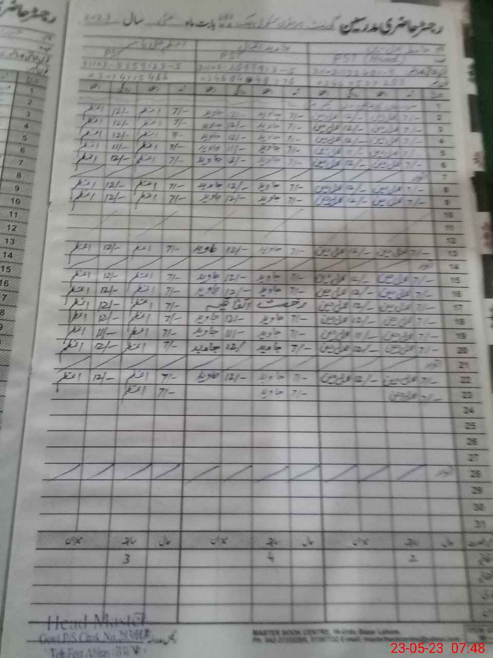 | Name: Az**** Al**** Ya**** Designation: (School Headmaster's/Headmistress's) PST Phone/Cell Number: 03**** |