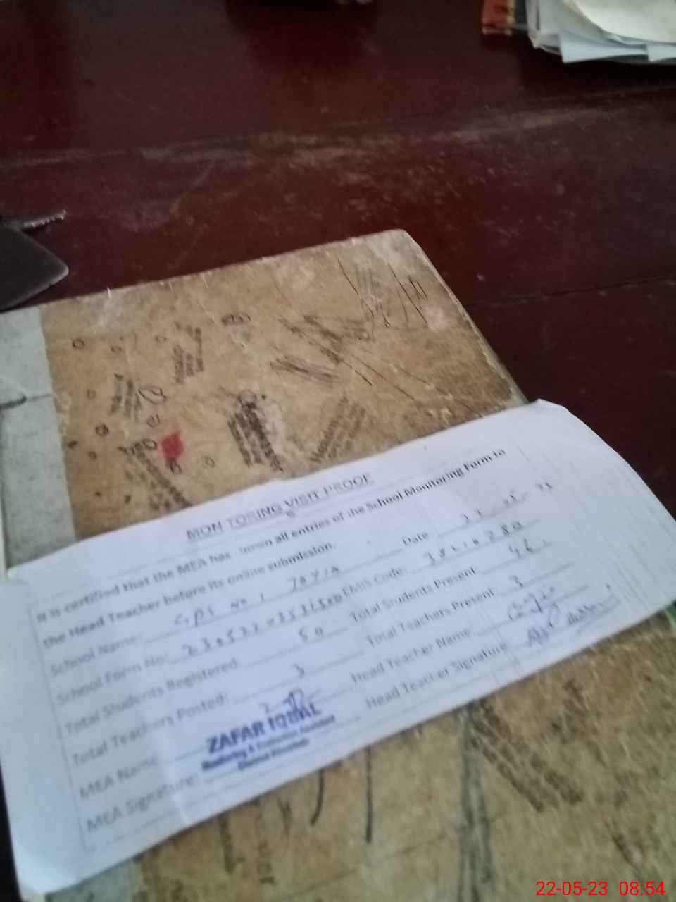 | Attendance Register | Head Teacher | MEA with School | Visit Proof |