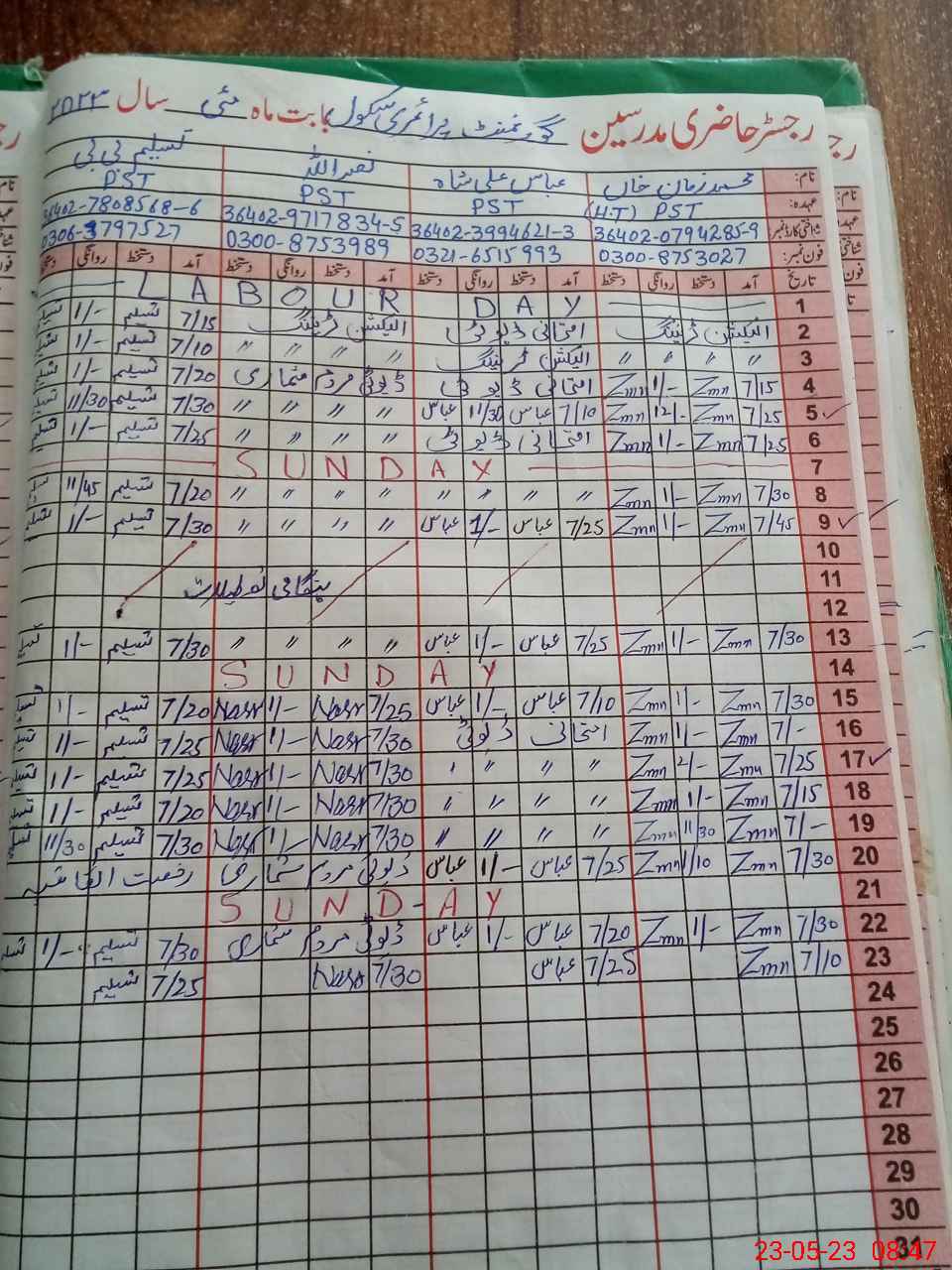 | Name: Ab**** Al**** Sh**** Designation: (School Headmaster's/Headmistress's) PST Phone/Cell Number: 03**** |