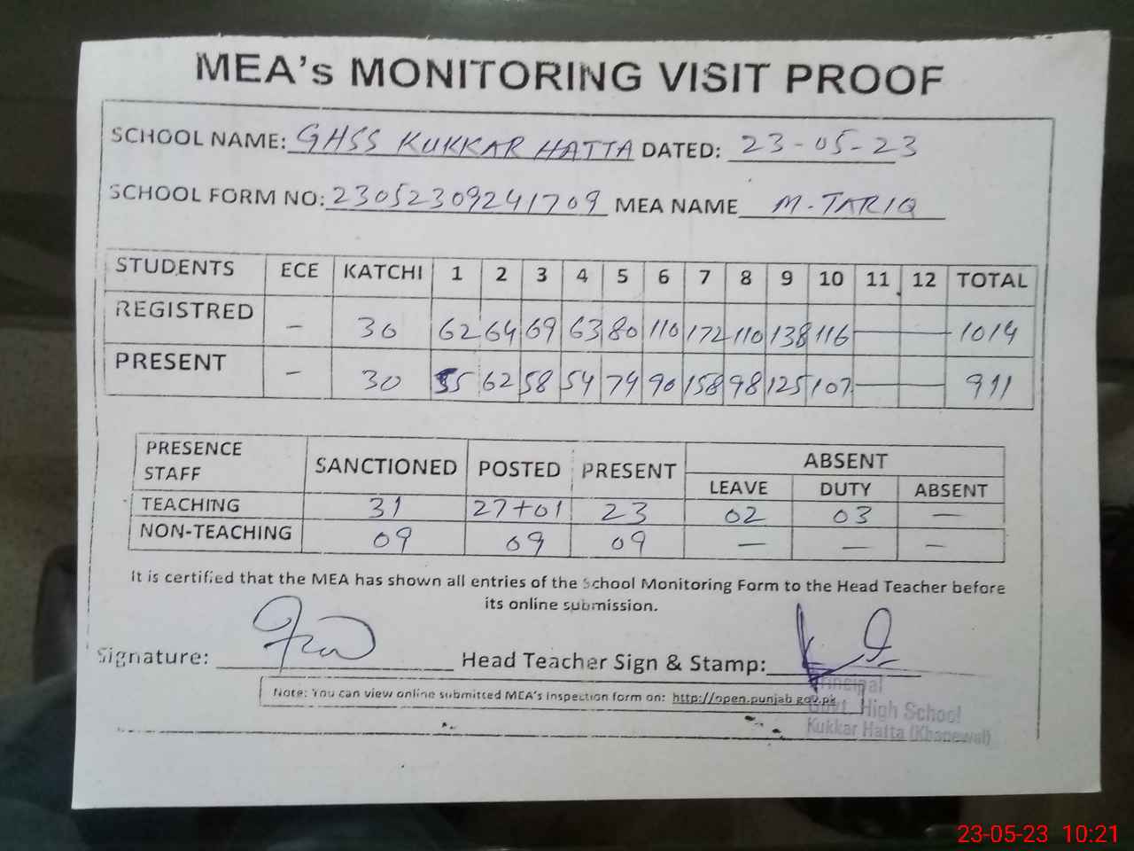 | EMIS Code: 36410026 | Name of School: GHSS KUKKAR HATTA, NAWAN SHEHR | |||