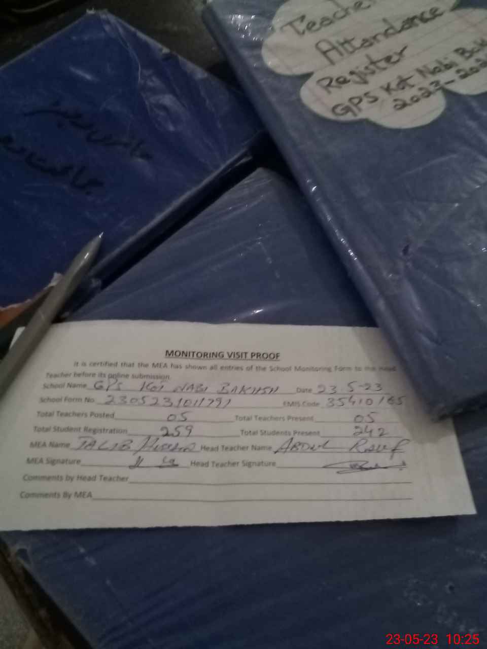 | Attendance Register | Head Teacher | MEA with School | Visit Proof |