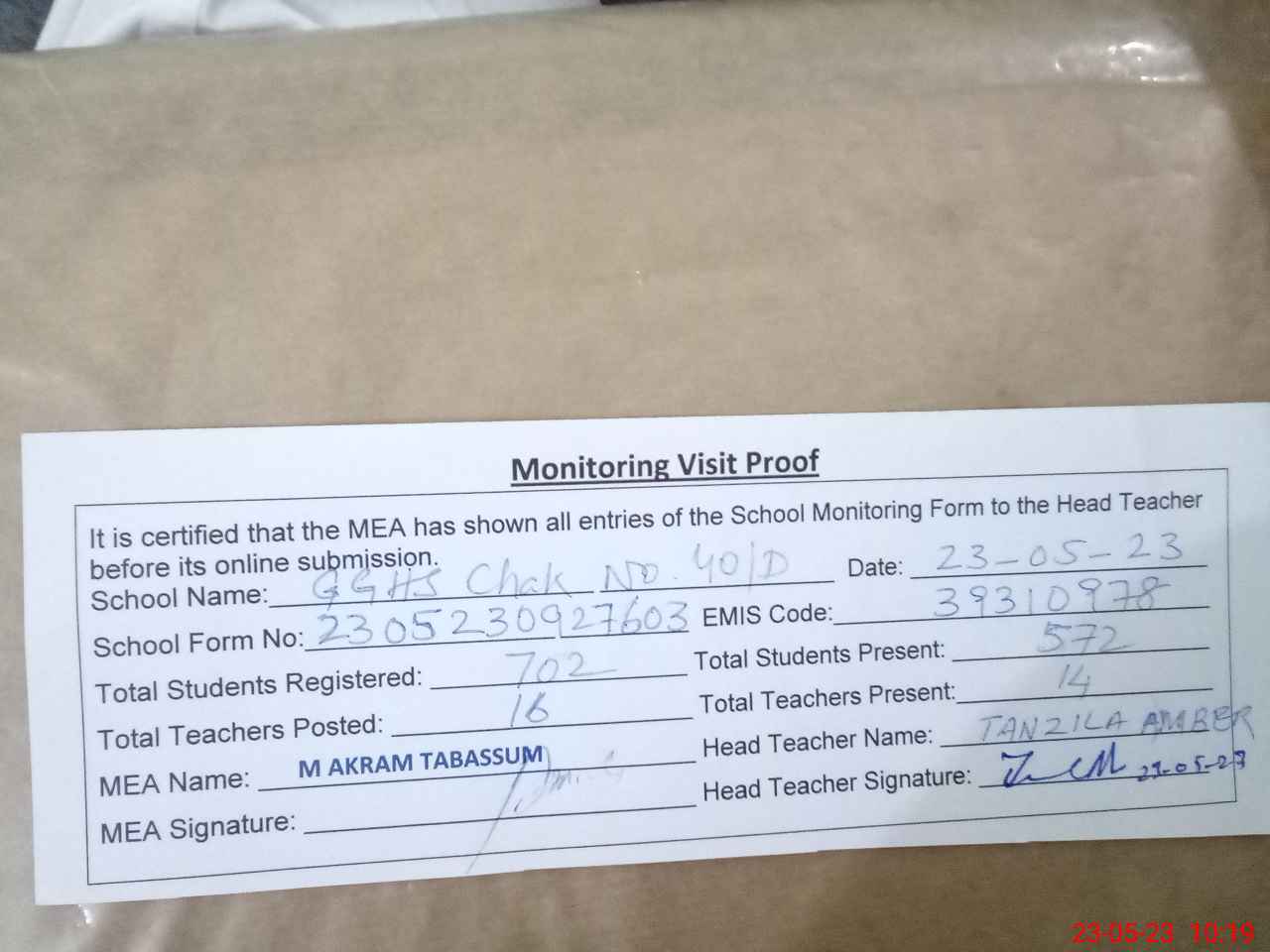 | EMIS Code: 39310978 | Name of School: GGHS CHAK NO. 40/D DEPALPUR | |||