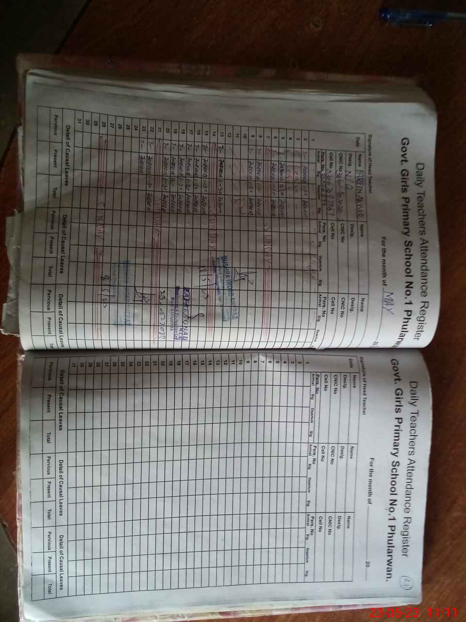 | CNIC | Full Name | Designation | R/C | Absence During Last Calender Month |