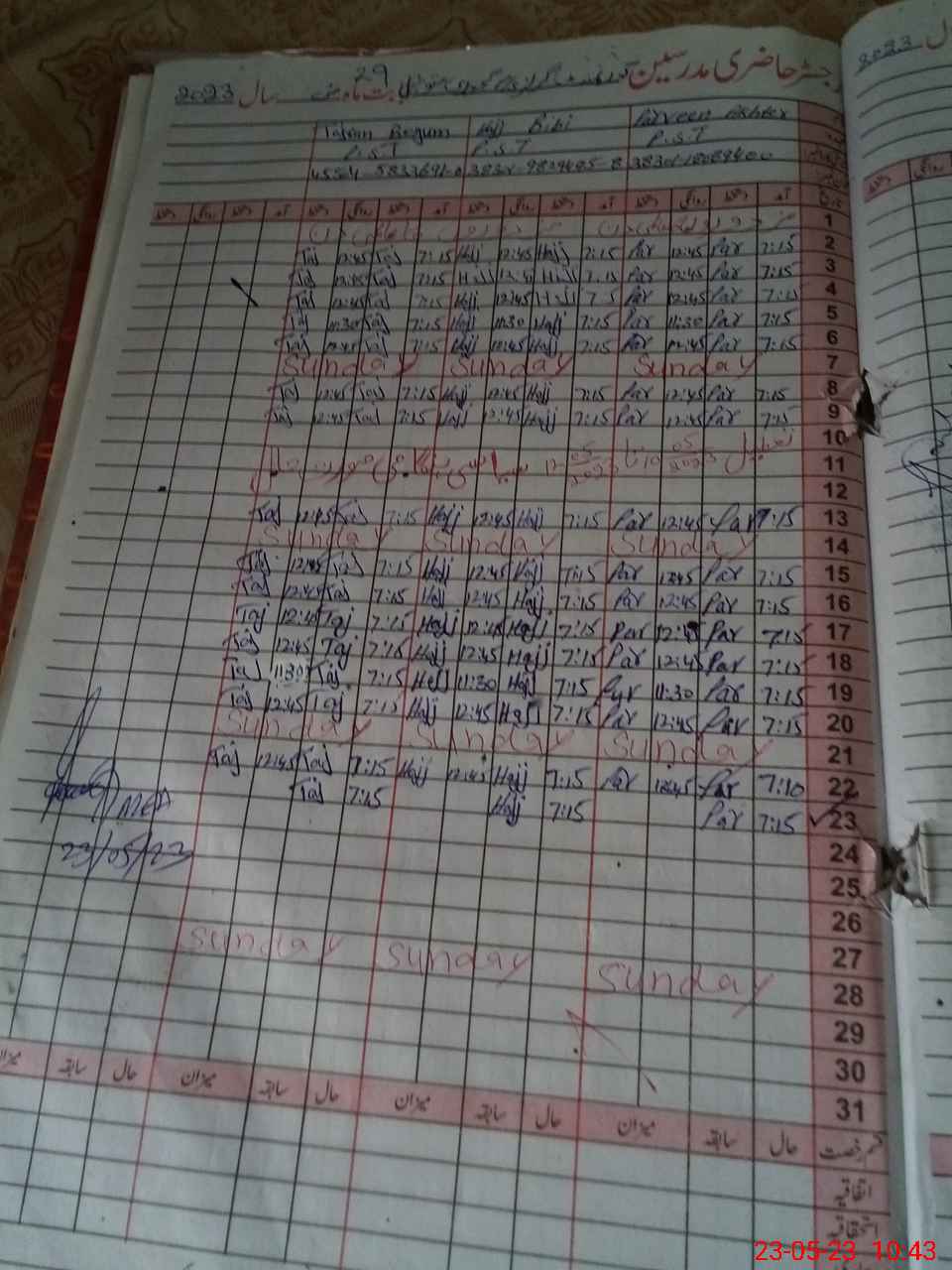 | CNIC | Full Name | Designation | R/C | Absence During Last Calender Month |