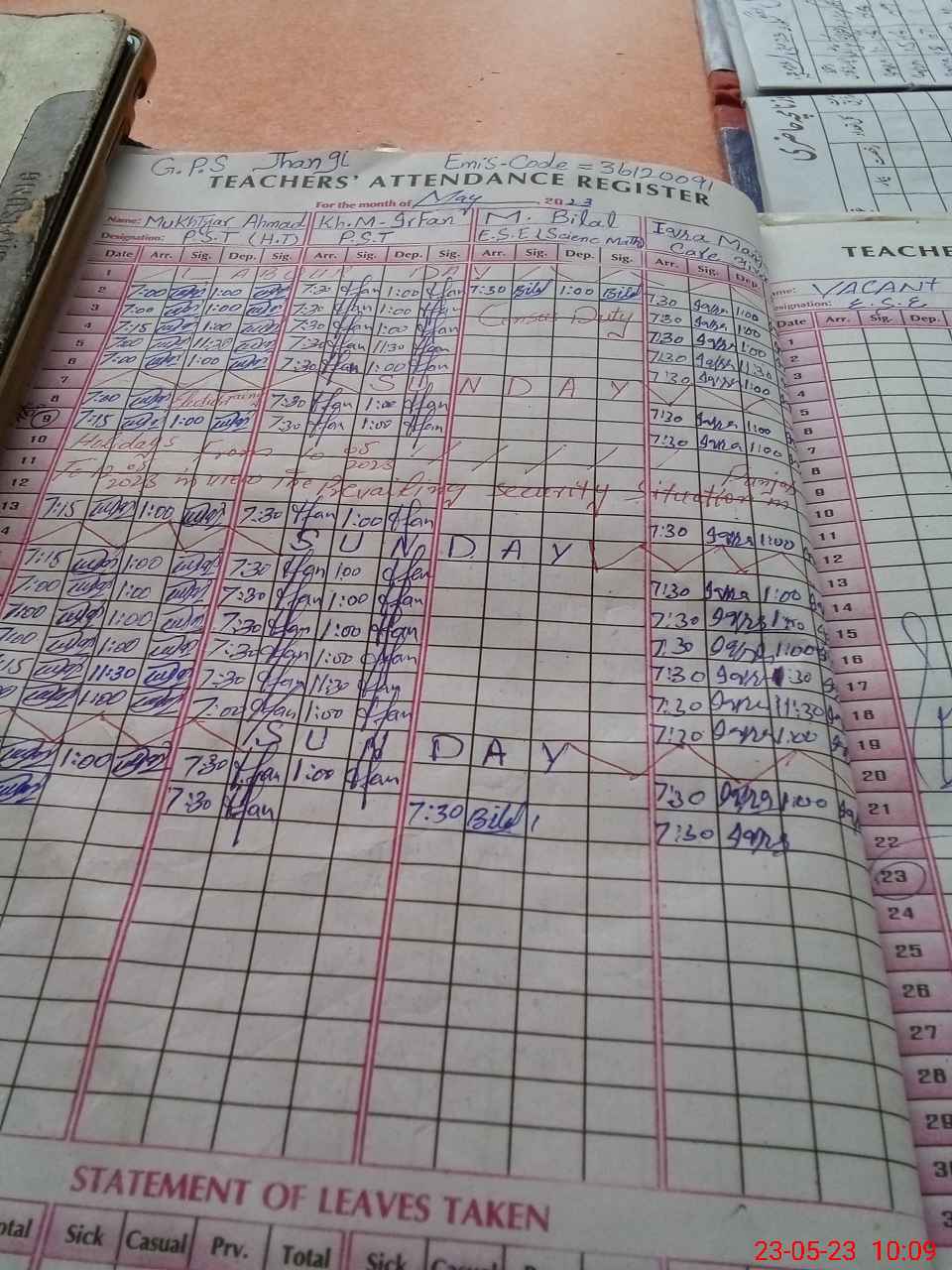 | Name: MU**** AH**** Designation: (School Headmaster's/Headmistress's) PST/PTC/JV Phone/Cell Number: 03**** |