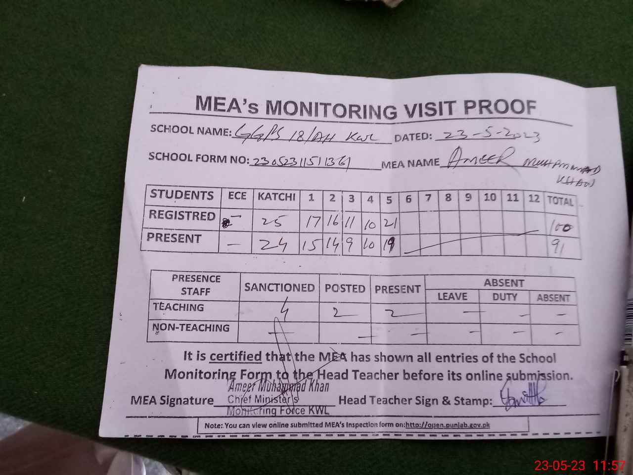 | EMIS Code: 36420396 | Name of School: GGPS 18/AH, KHANEWAL | |||
