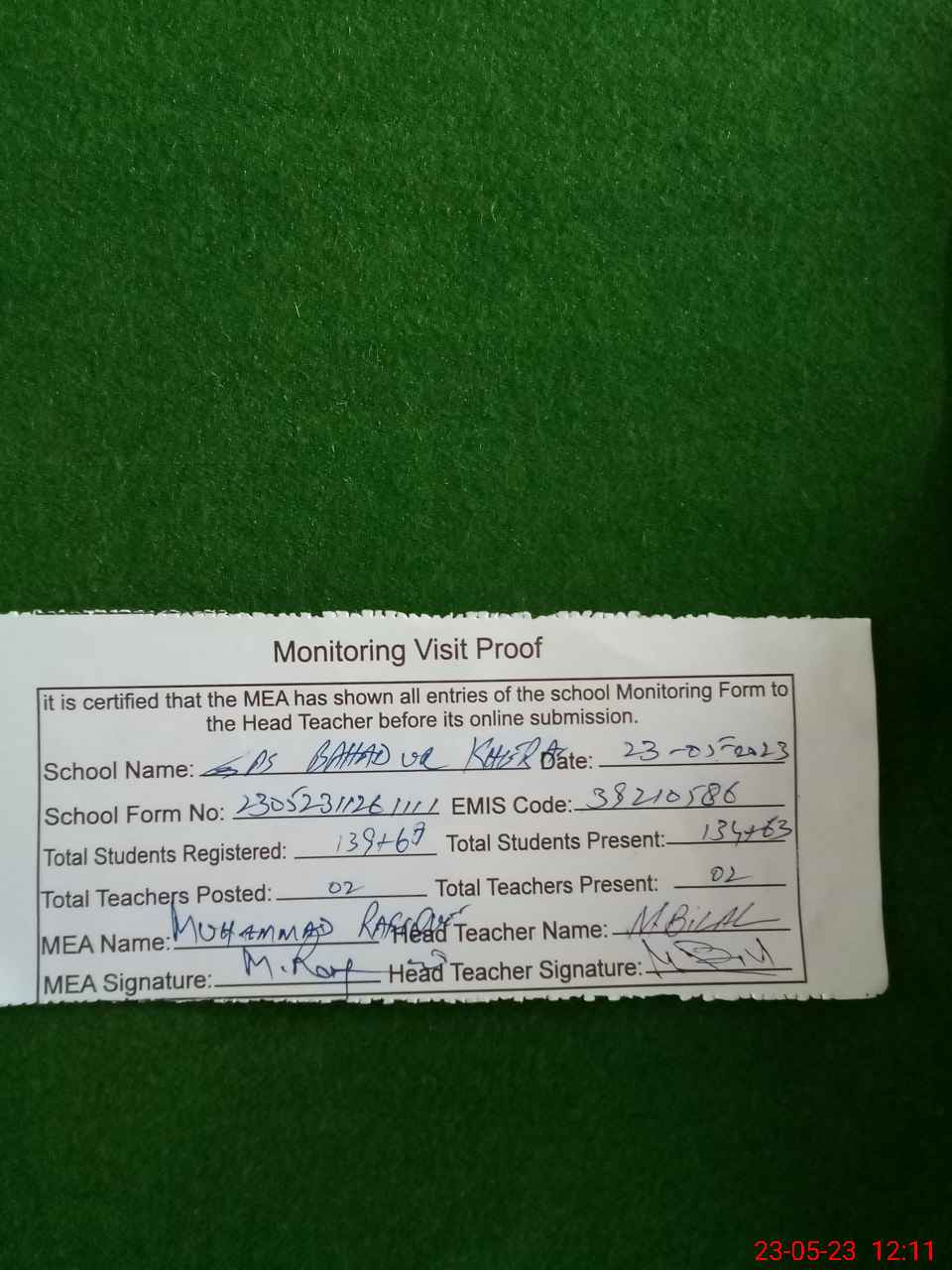 | EMIS Code: 39210586 | Name of School: GPS BAHADUR KHERRA | |||