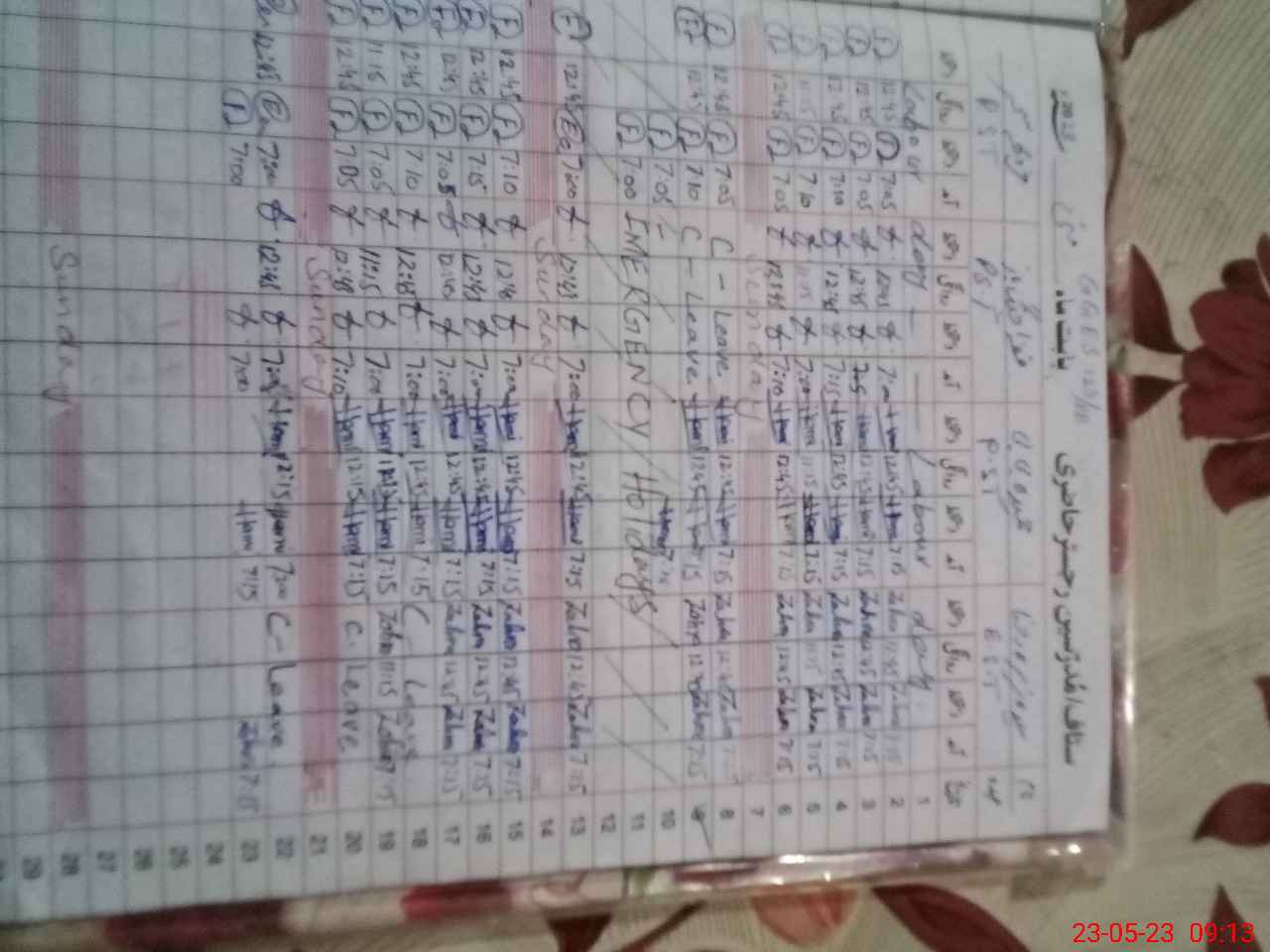 | CNIC | Full Name | Designation | R/C | Absence During Last Calender Month |