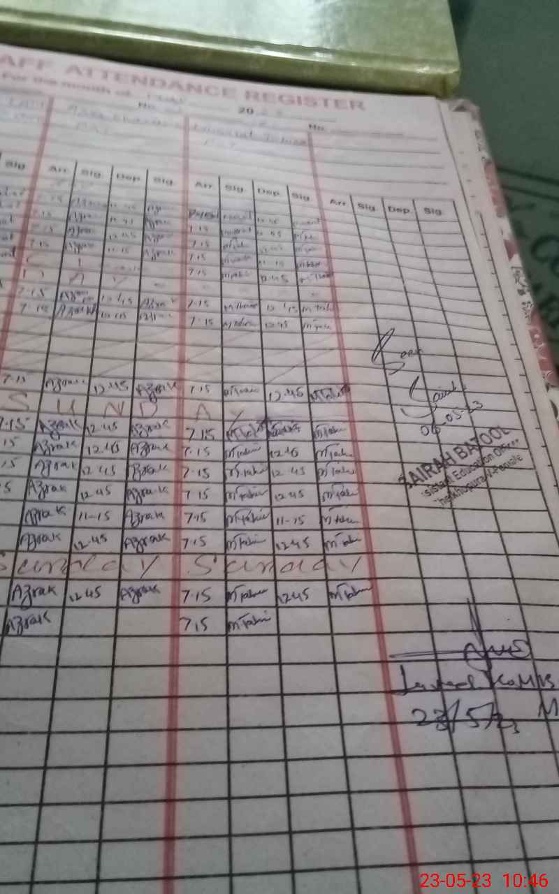 | 33**** | Sh**** Ba**** | SST | Regular | 0 | 0 | 0 | 0 | 0 | 0 | 0 | 0 | 0 | Exam Duty |