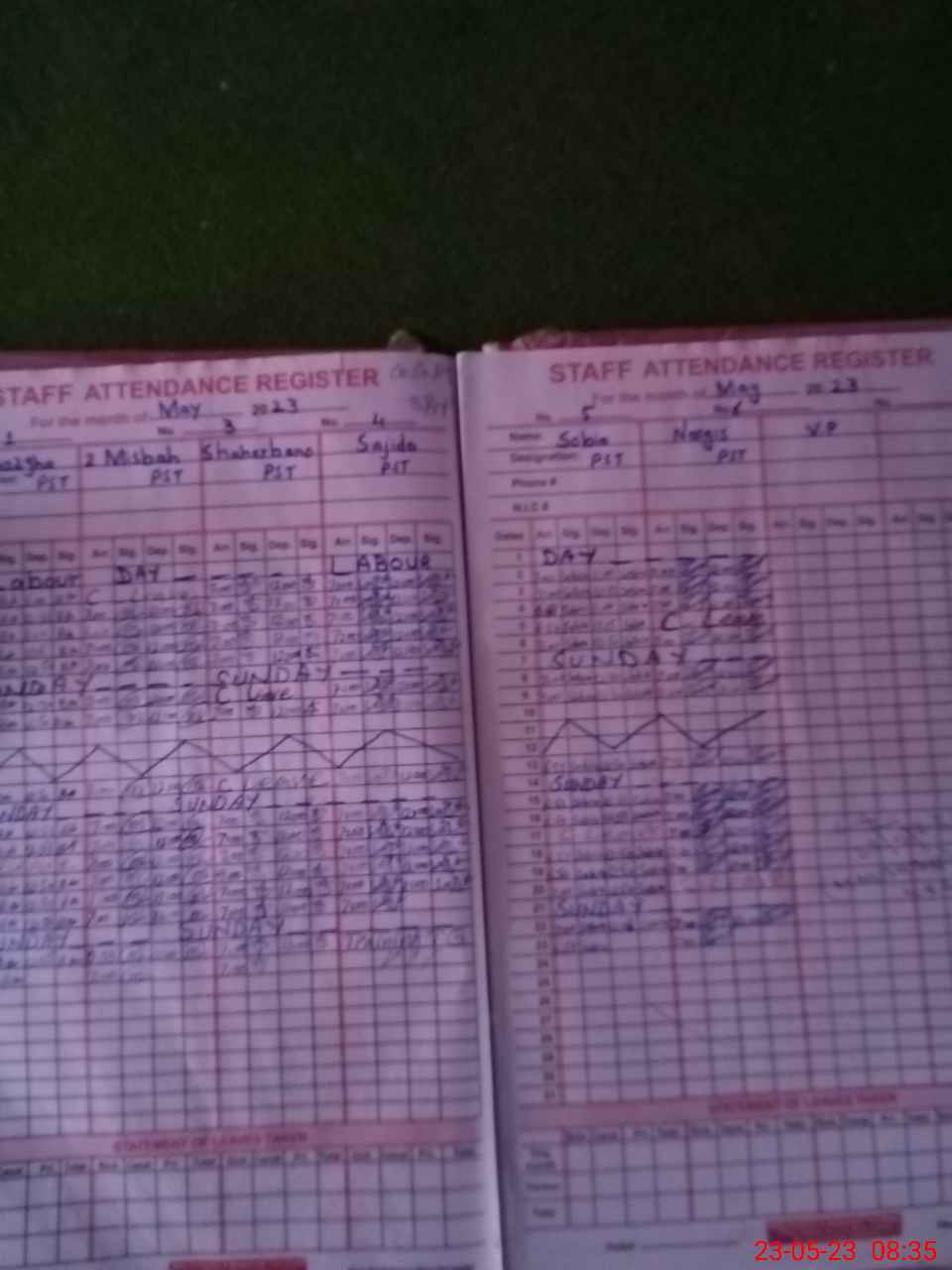 | CNIC | Full Name | Designation | R/C | Absence During Last Calender Month |