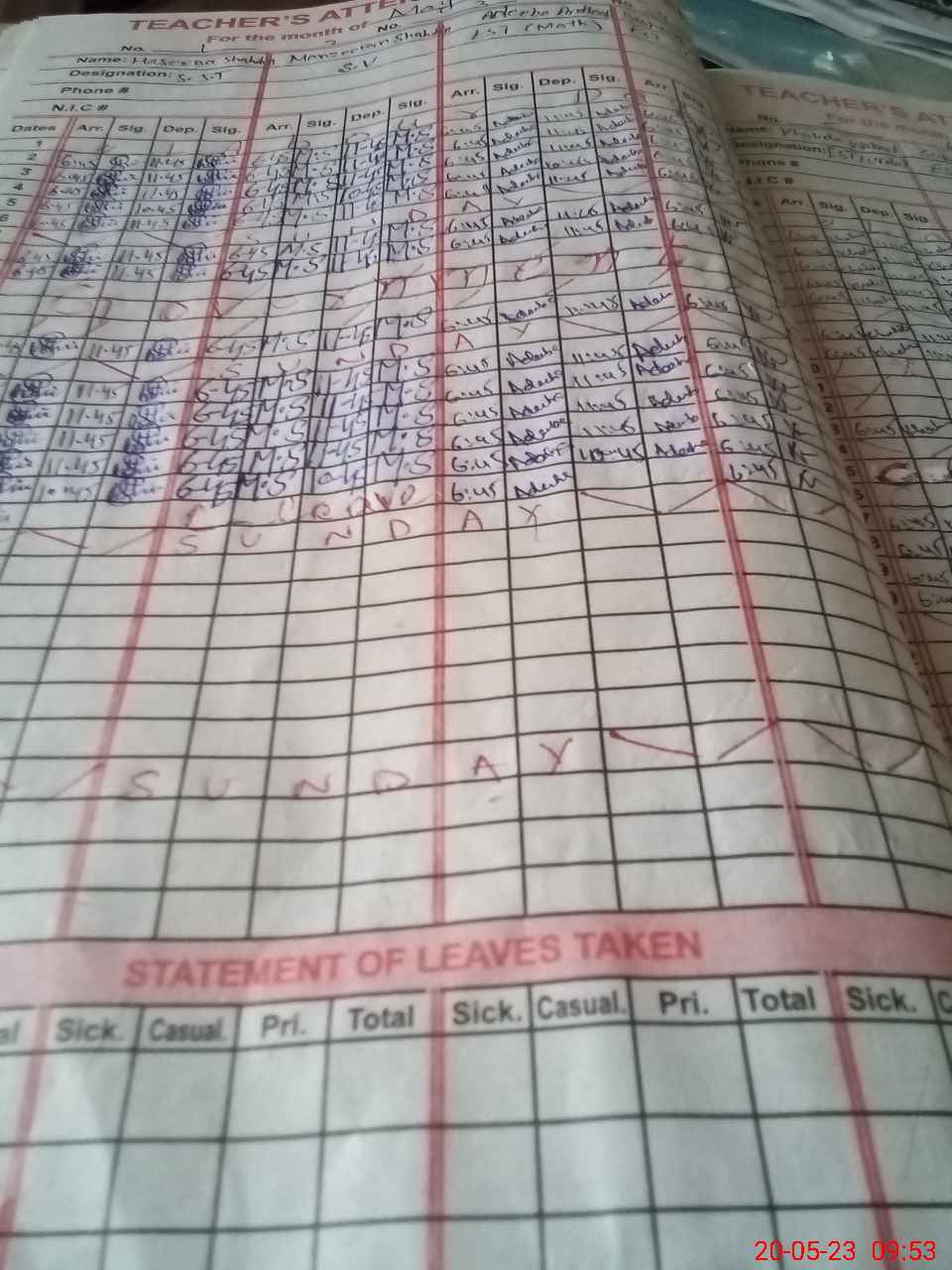 | Name: HA**** SH**** DI**** Designation: (School Headmaster's/Headmistress's) S.S.T.(SC) Phone/Cell Number: 03**** |