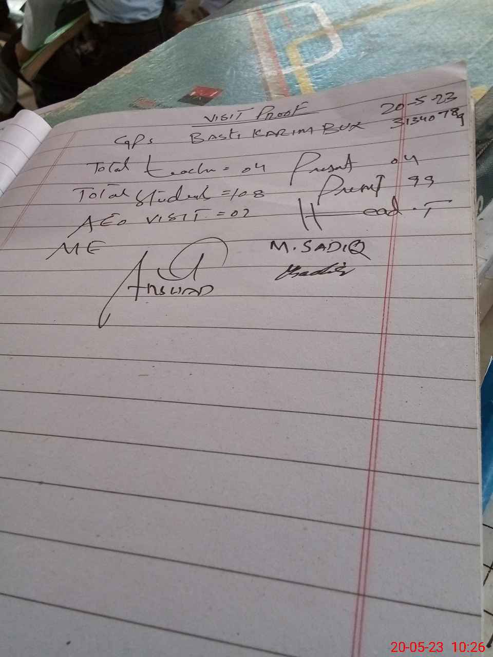 | Attendance Register | Head Teacher | MEA with School | Visit Proof |