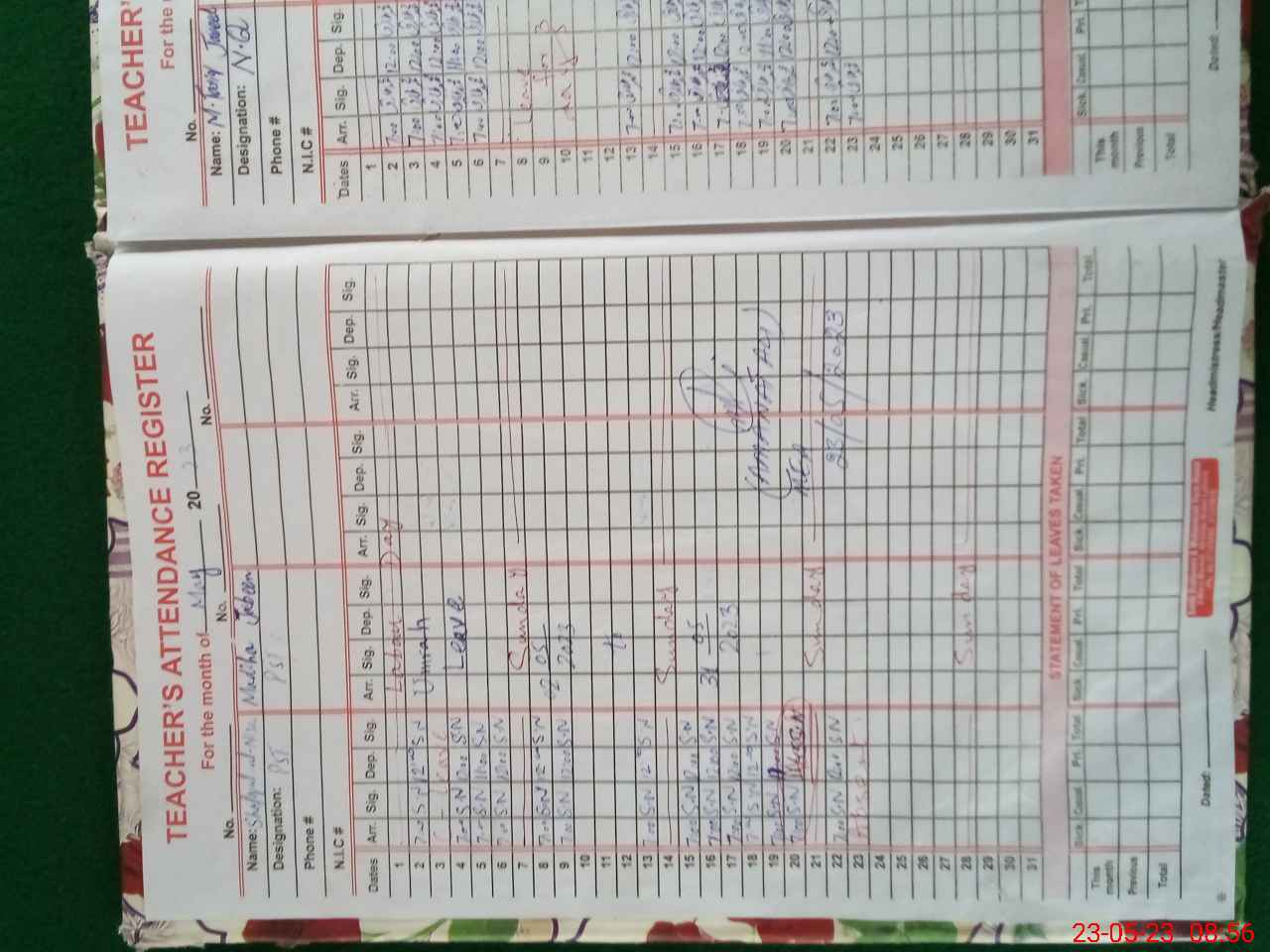 | Name: Se**** Sa**** Designation: (School Headmaster's/Headmistress's) PST Phone/Cell Number: 03**** |
