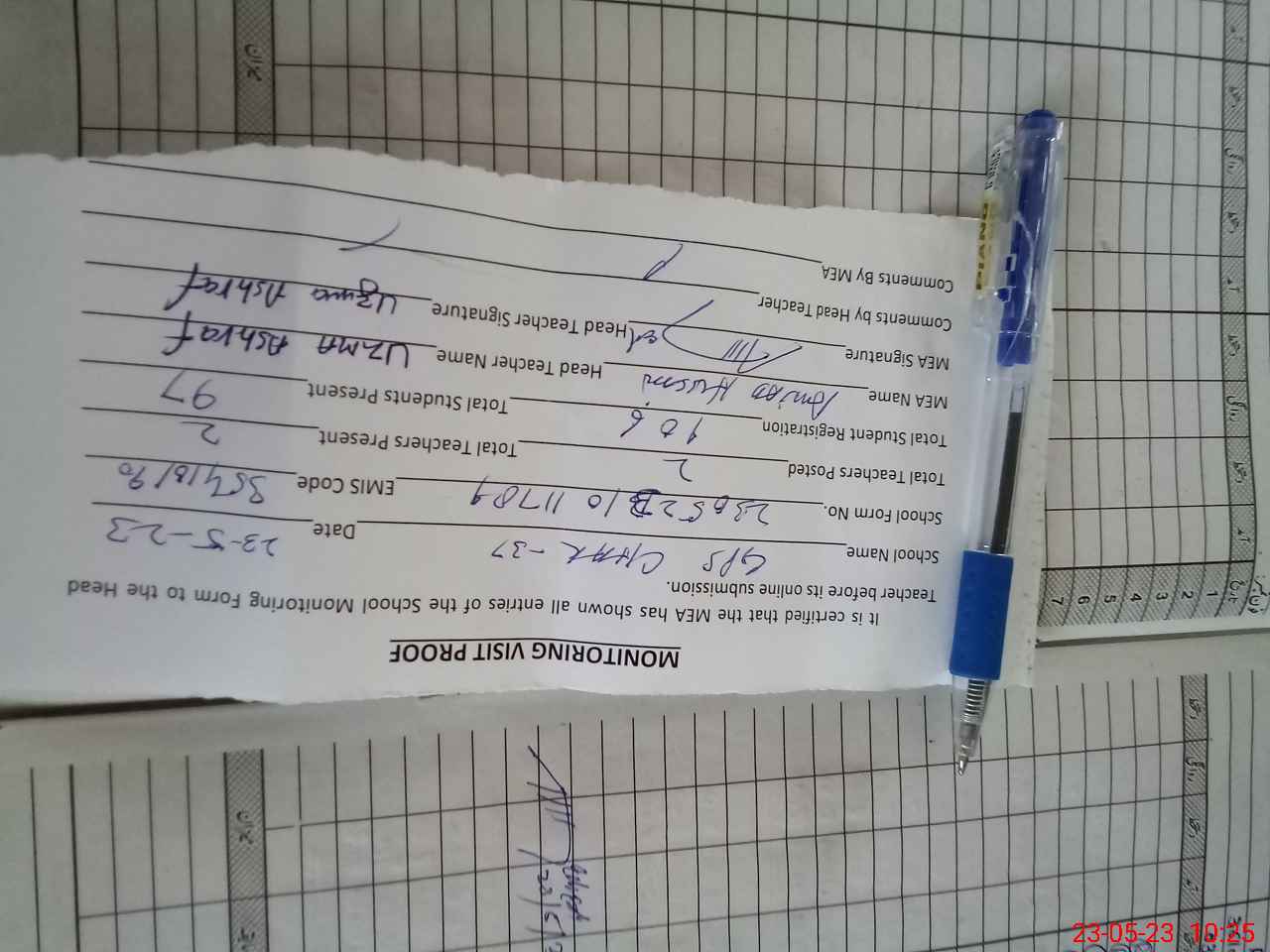 | Attendance Register | Head Teacher | MEA with School | Visit Proof |