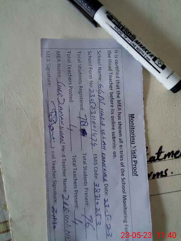 | EMIS Code: 38310253 | Name of School: GGPS HABIB ULLLAH KHAN WALA | |||