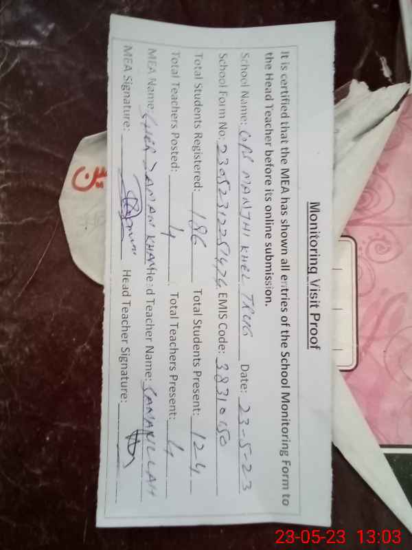 | EMIS Code: 38310150 | Name of School: GPS MANJHI KHEL TRAGH TEH. ISA KHEL | |||