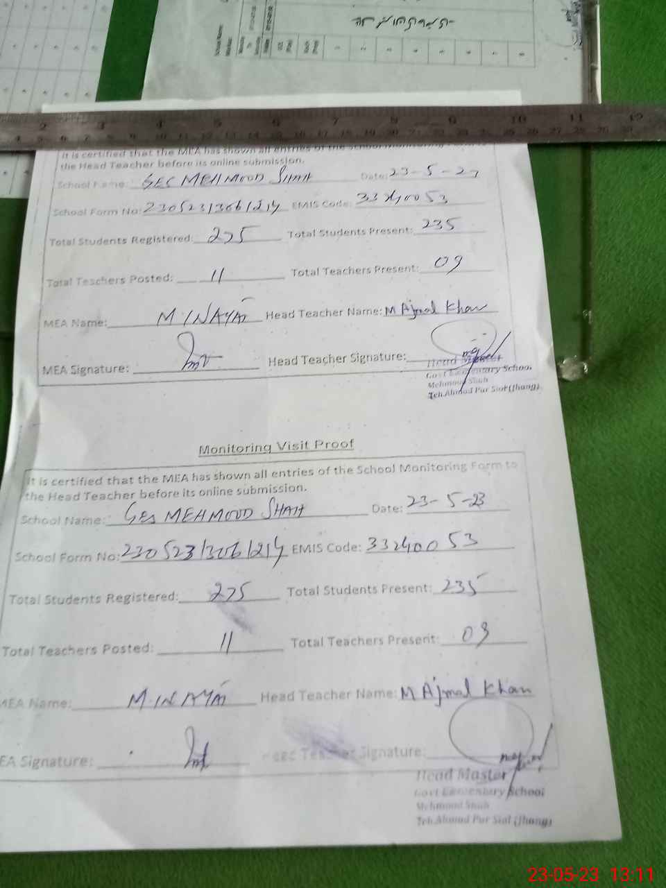 | EMIS Code: 33240053 | Name of School: GES MAHMOOD SHAH | |||