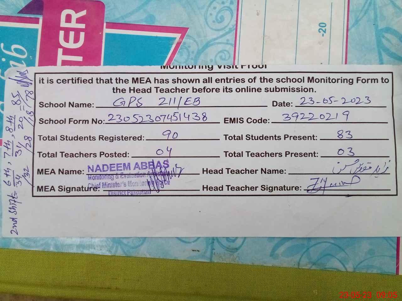 | EMIS Code: 39220219 | Name of School: GPS 211 EB | |||