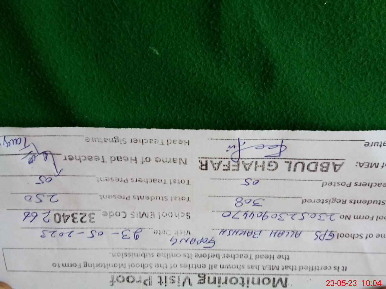 | EMIS Code: 32340266 | Name of School: GPS ALLAH BAKHSH GOPANG | |||