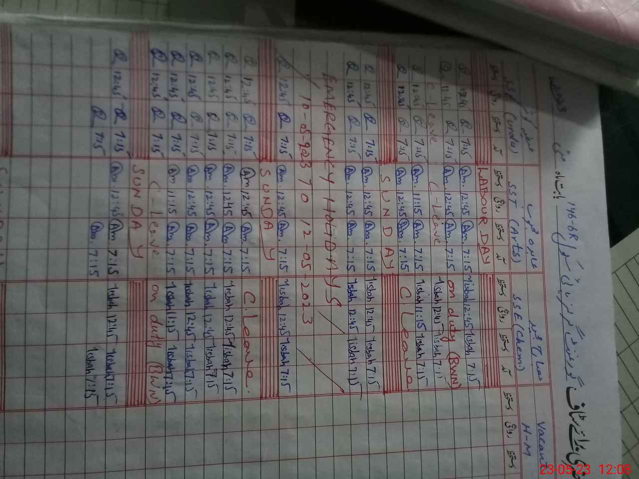 | CNIC | Full Name | Designation | R/C | Absence During Last Calender Month |