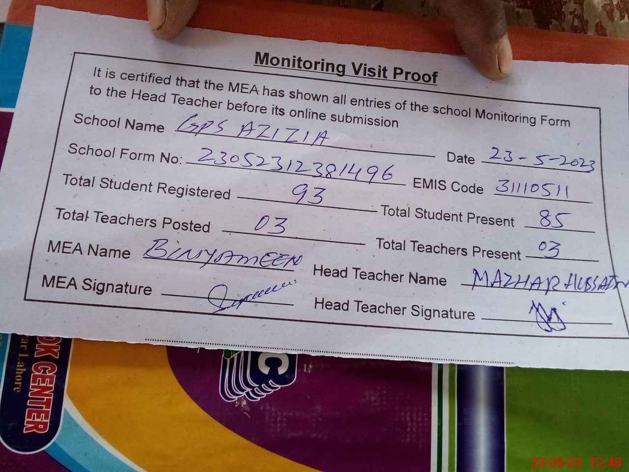 | EMIS Code: 31110511 | Name of School: GPS AZIZIA | |||