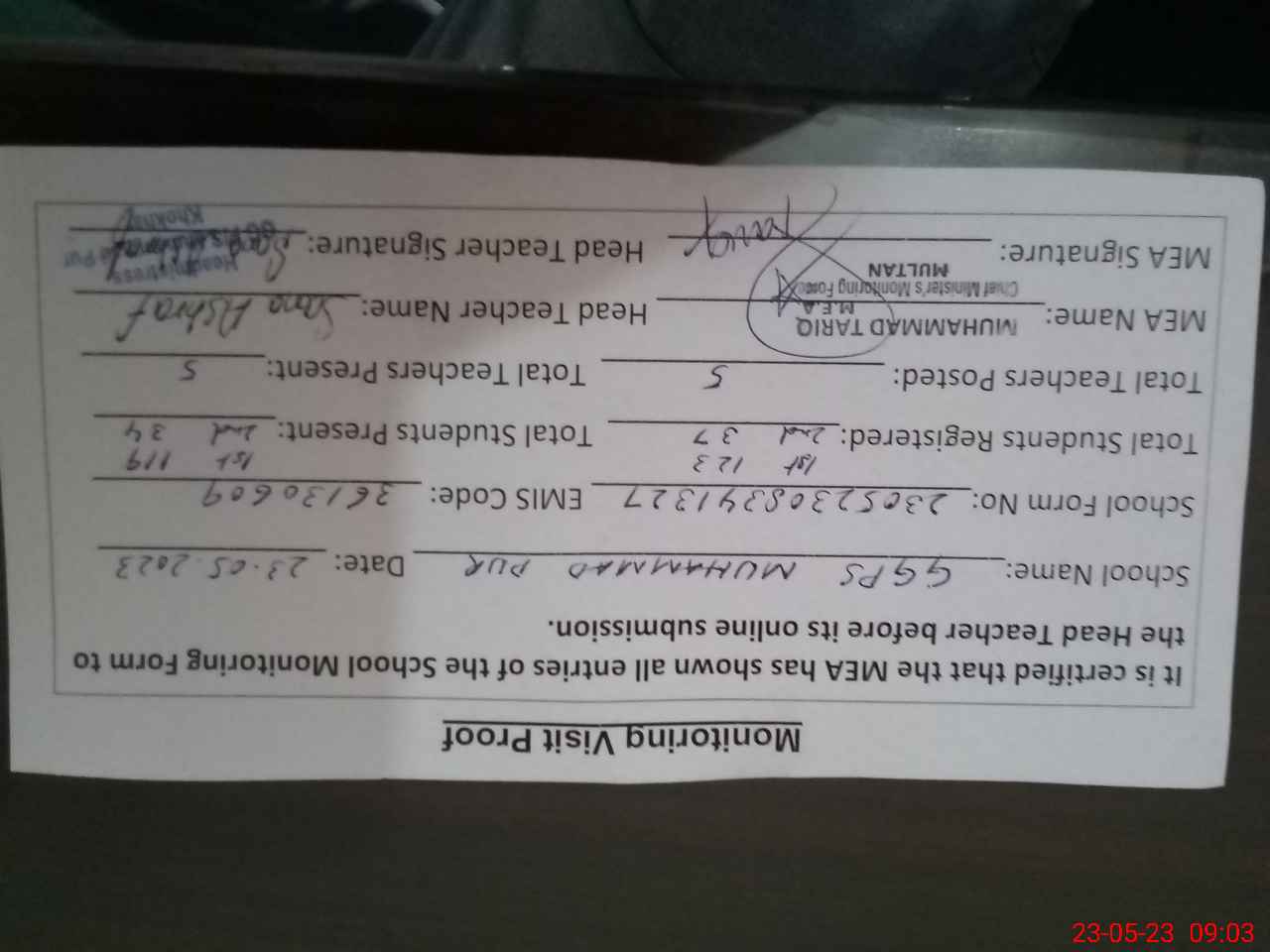 | EMIS Code: 36130609 | Name of School: GGPS MUHAMMAD PUR KHOKHAR | |||