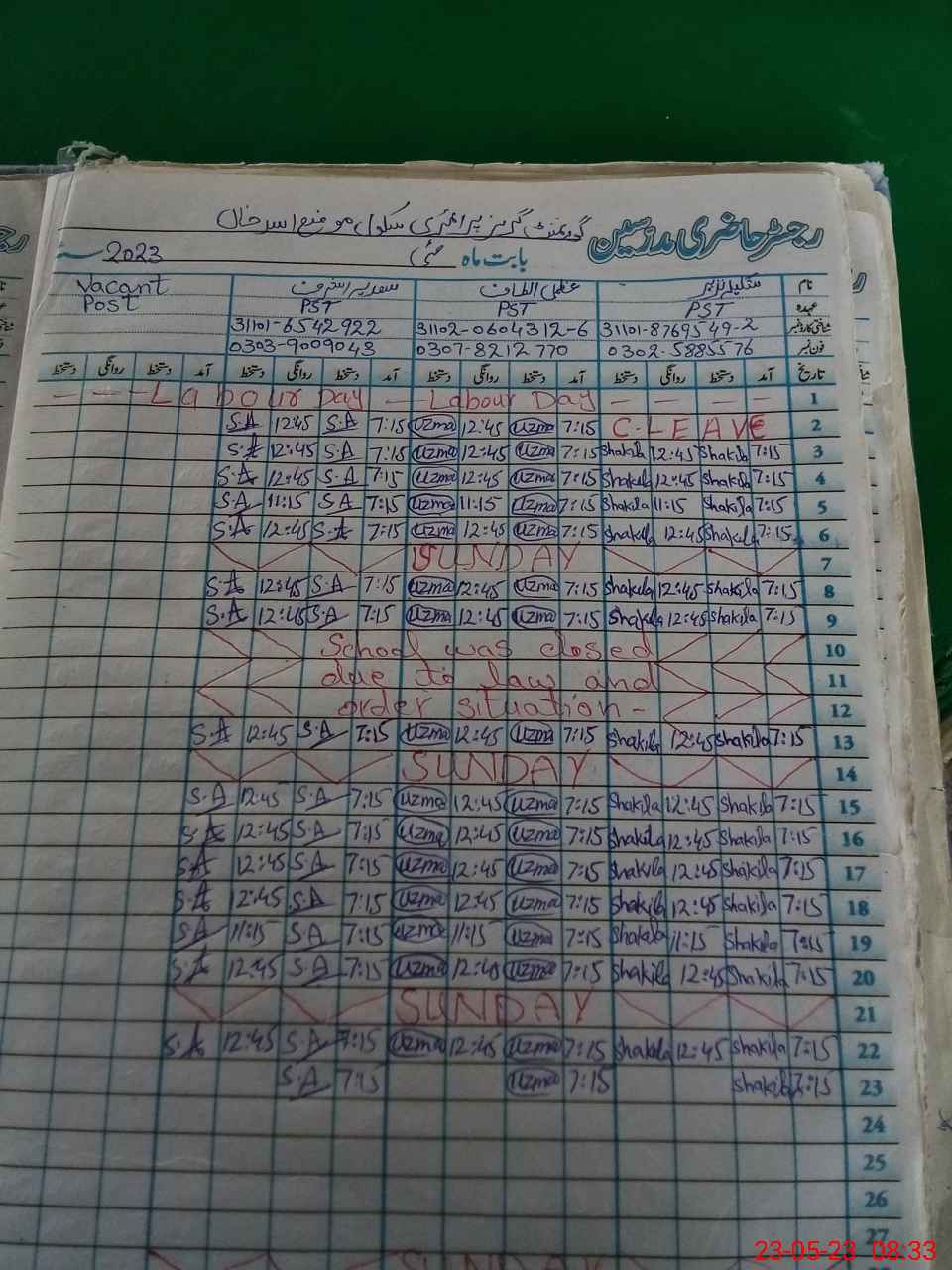 | Name: SH**** NA**** Designation: (School Headmaster's/Headmistress's) PST Phone/Cell Number: 03**** |