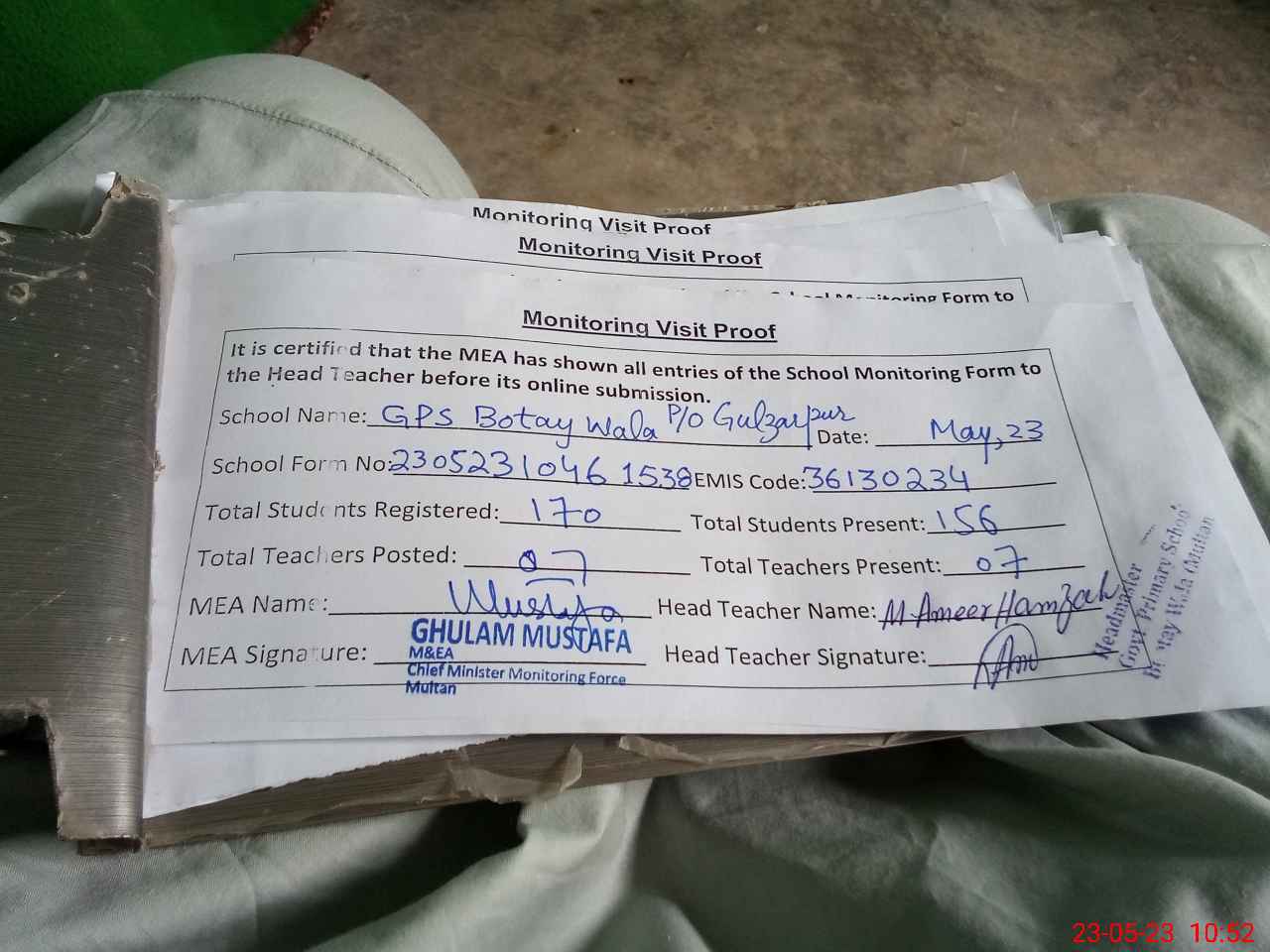 | EMIS Code: 36130234 | Name of School: GES BOTAY WALA P/ O GULZAR PUR | |||