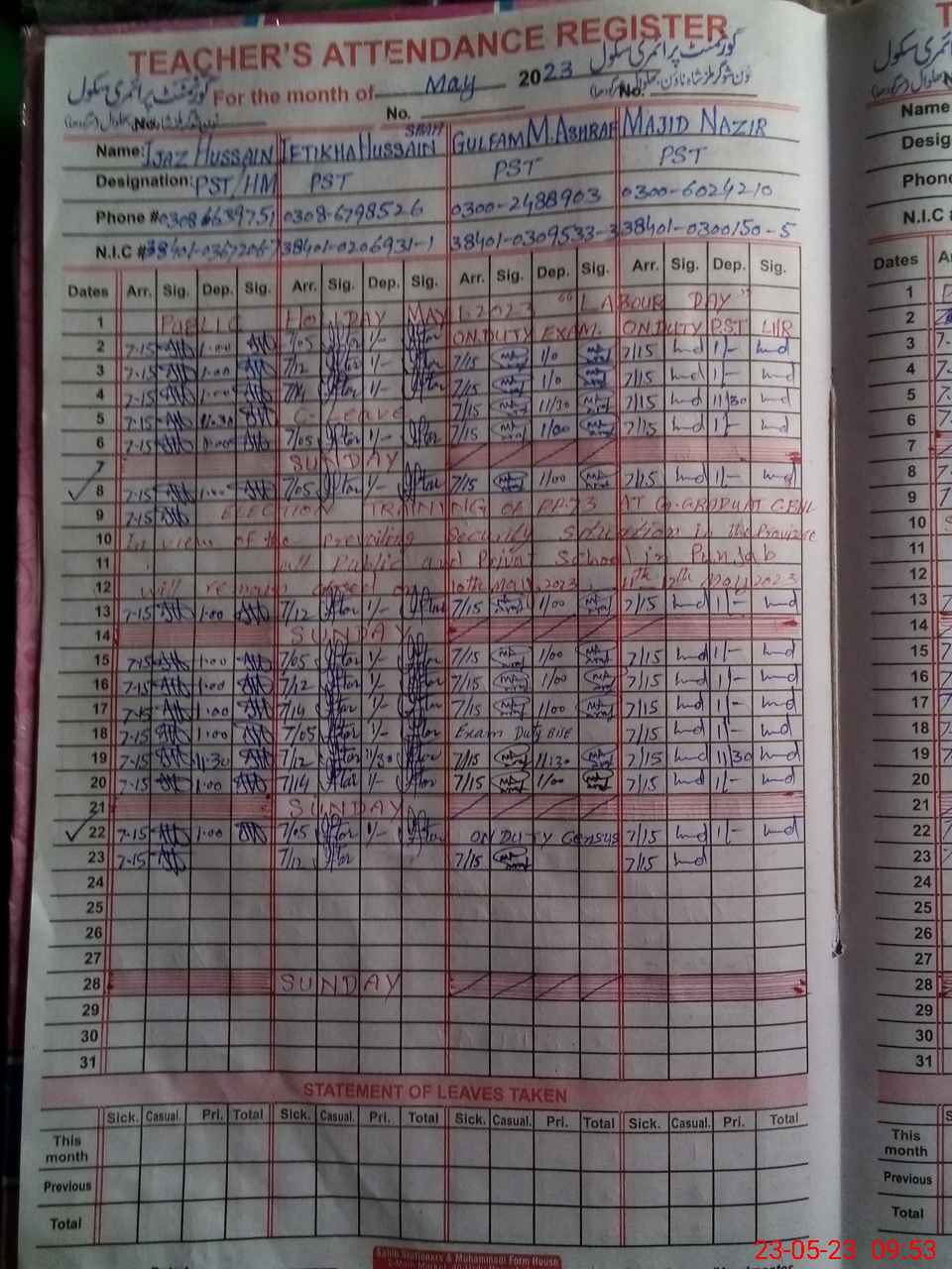 | Name: IJ**** HU**** Designation: (School Headmaster's/Headmistress's) PST Phone/Cell Number: 03**** |