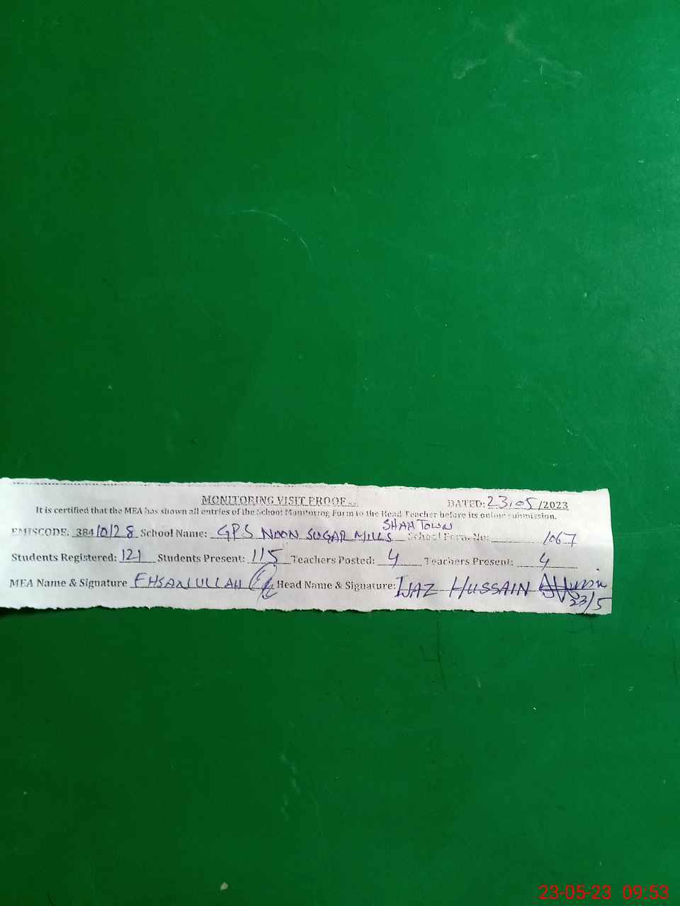 | EMIS Code: 38410128 | Name of School: GPS NOON SUGAR MILL SHAH TOWN | |||