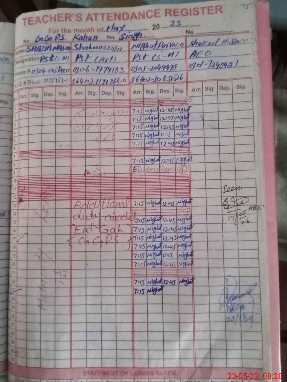 | Name: SH**** NA**** Designation: (School Headmaster's/Headmistress's) PST Phone/Cell Number: 03**** |