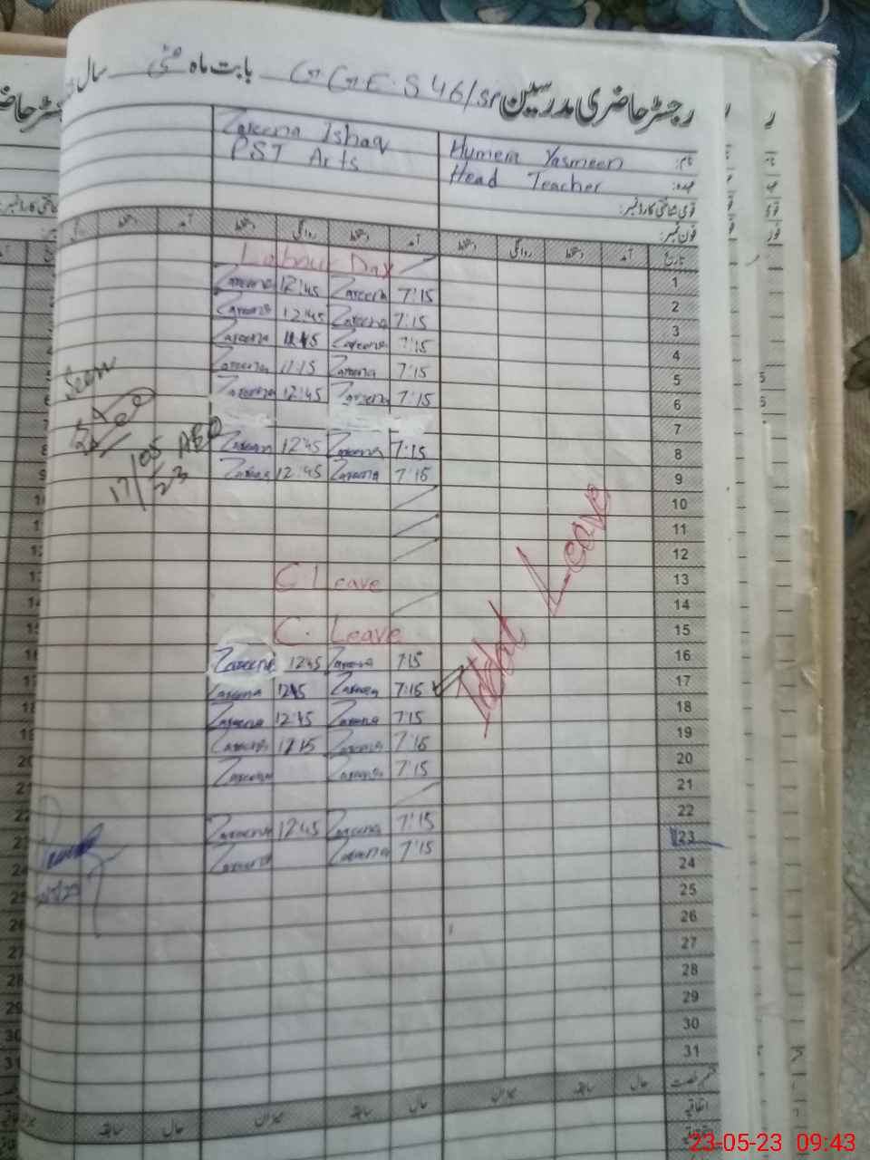 | Name: HU**** YA**** Designation: (School Headmaster's/Headmistress's) PST Phone/Cell Number: 03**** |