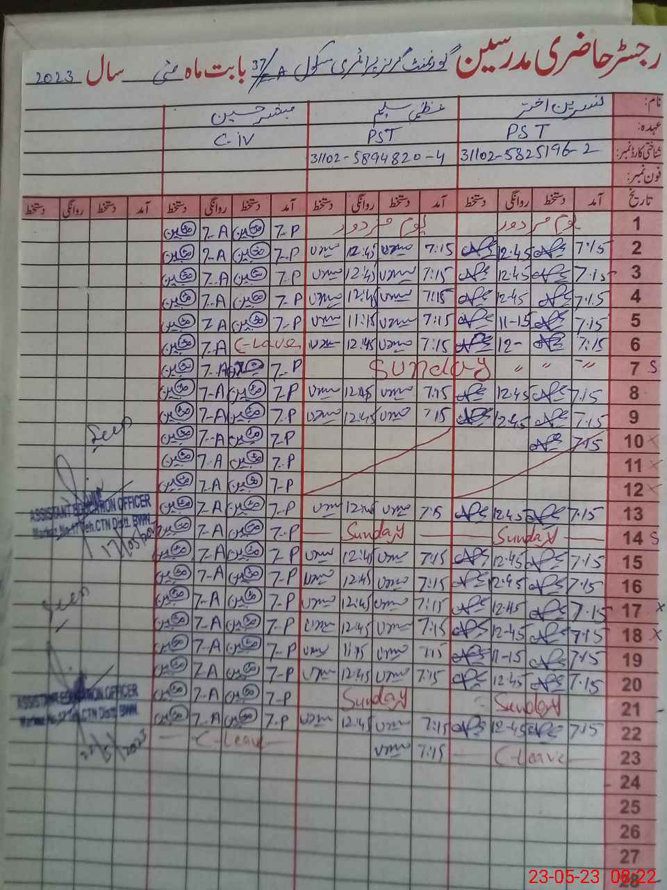 | Name: NA**** AK**** Designation: (School Headmaster's/Headmistress's) PST Phone/Cell Number: 03**** |