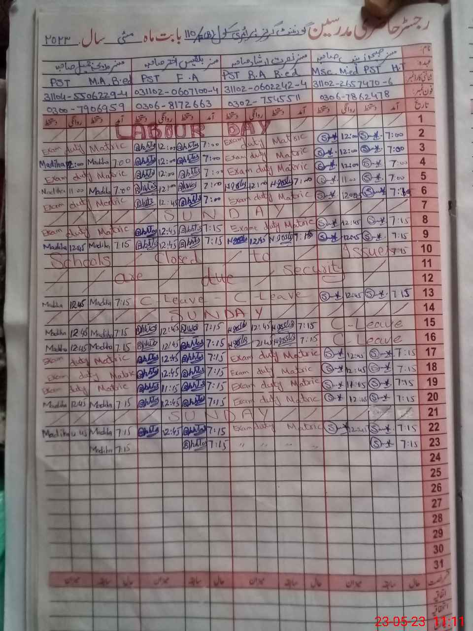 | 31**** | Nu**** Ir**** | PST | Regular | 0 | 0 | 0 | 0 | 0 | 0 | 0 | 0 | 0 | Exam Duty |
