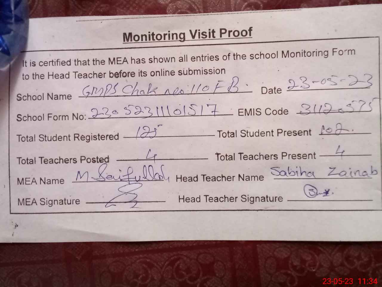 | EMIS Code: 31120575 | Name of School: GMPS CHAK NO.110 FATEH (B) | |||