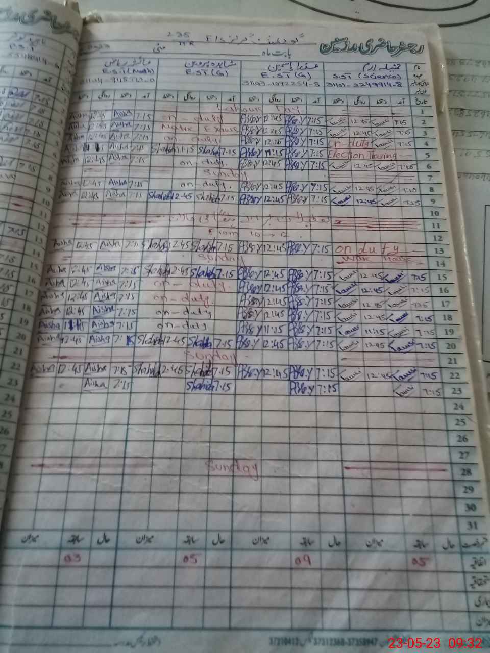 | Leave | Duty | Absent | Maternity | Medical | Ex- Pak |