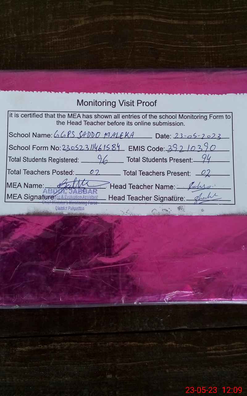 | EMIS Code: 39210390 | Name of School: GGPS SADDO MALEKA | |||