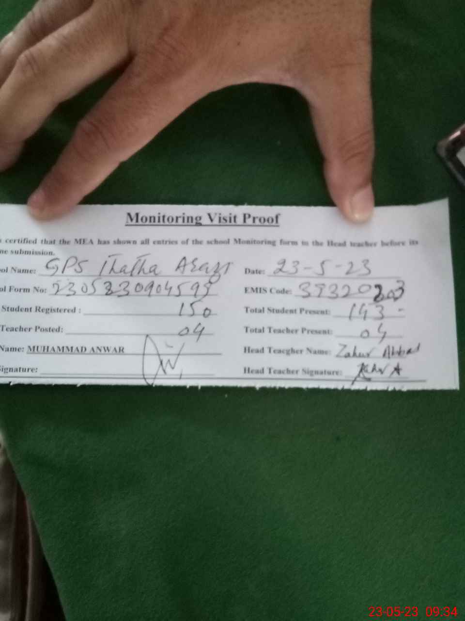 | EMIS Code: 39320203 | Name of School: GPS THATHA ARAZI | |||