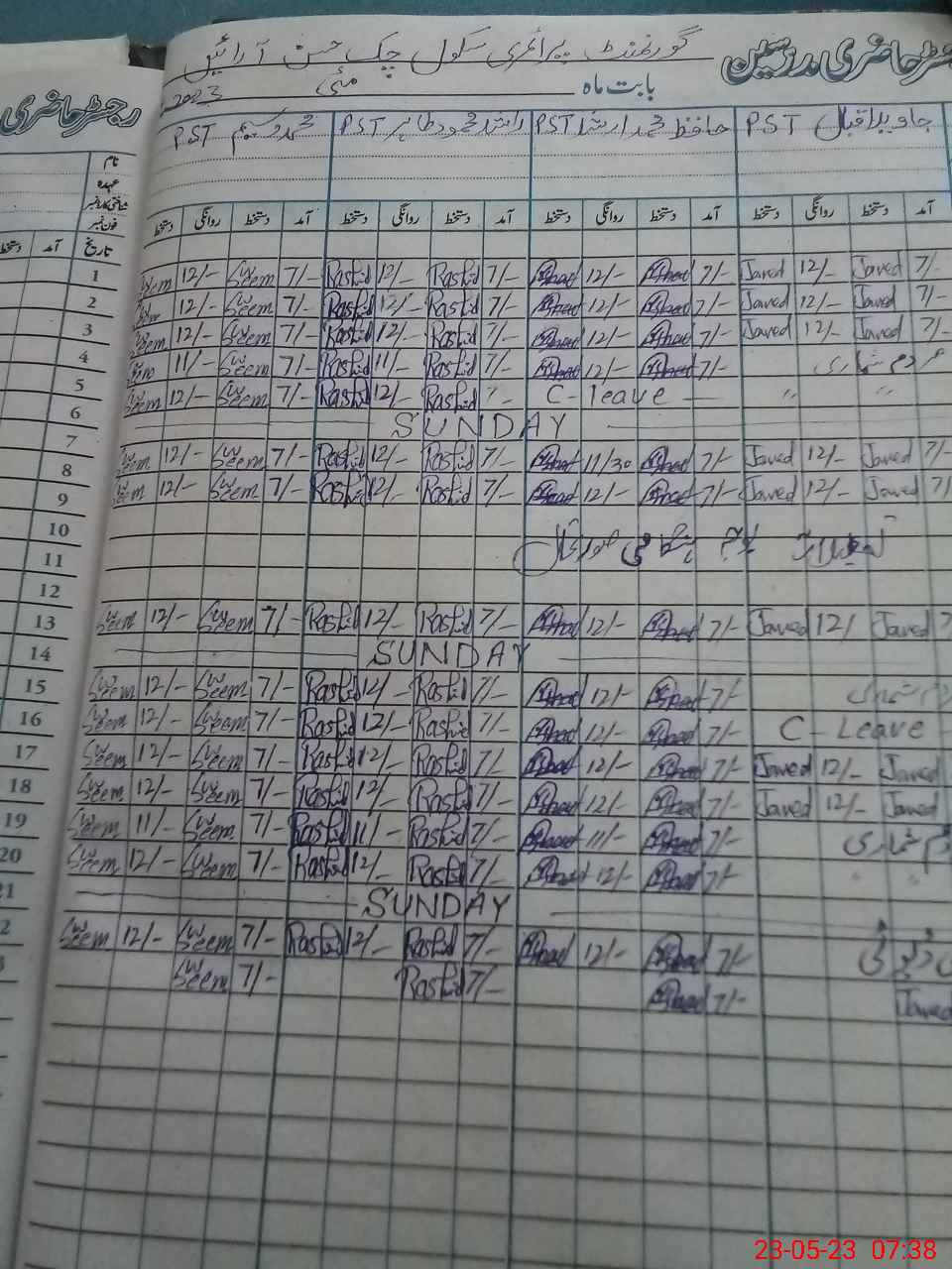| CNIC | Full Name | Designation | R/C | Absence During Last Calender Month |