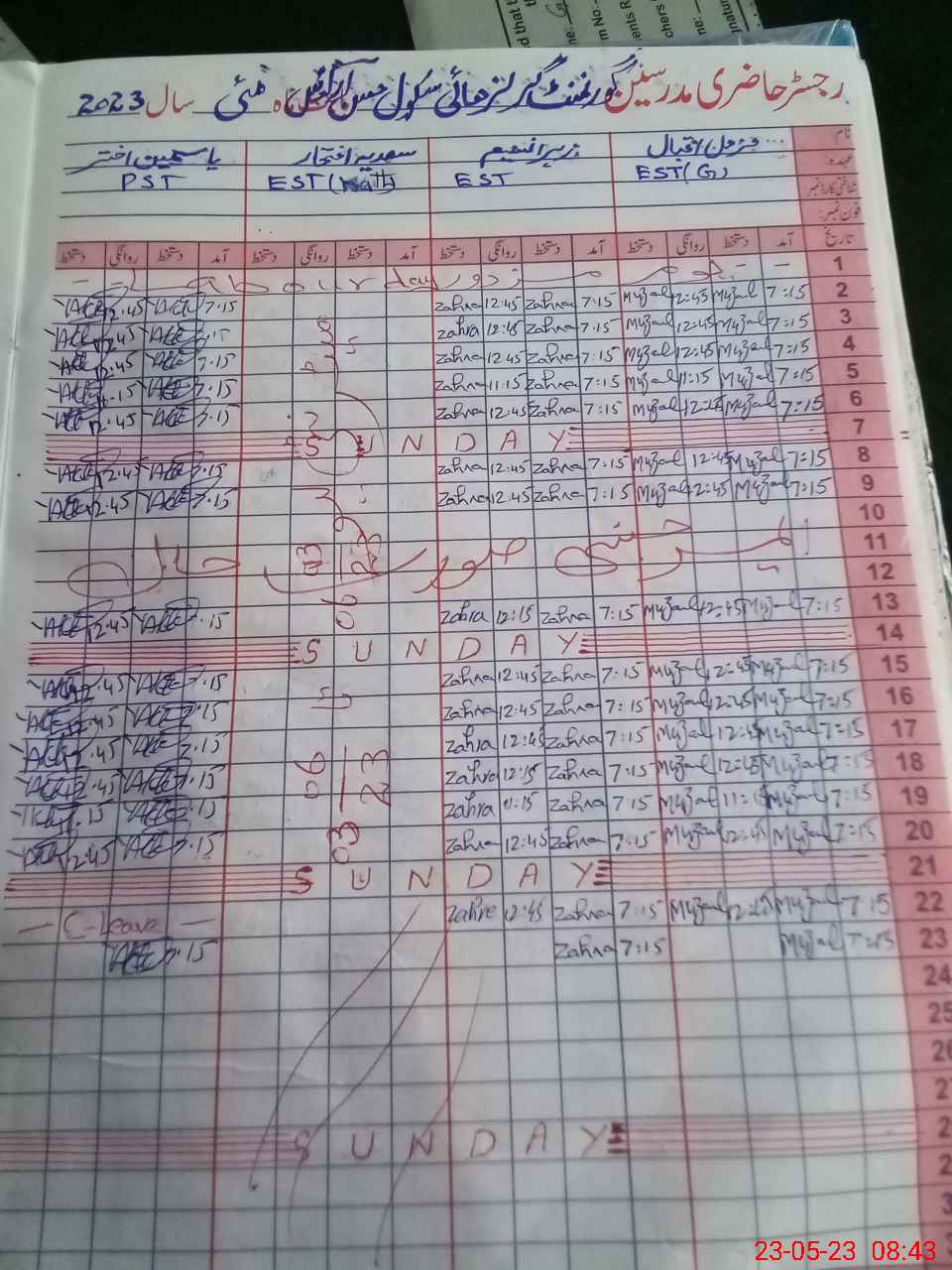 | CNIC | Full Name | Designation | R/C | Absence During Last Calender Month |