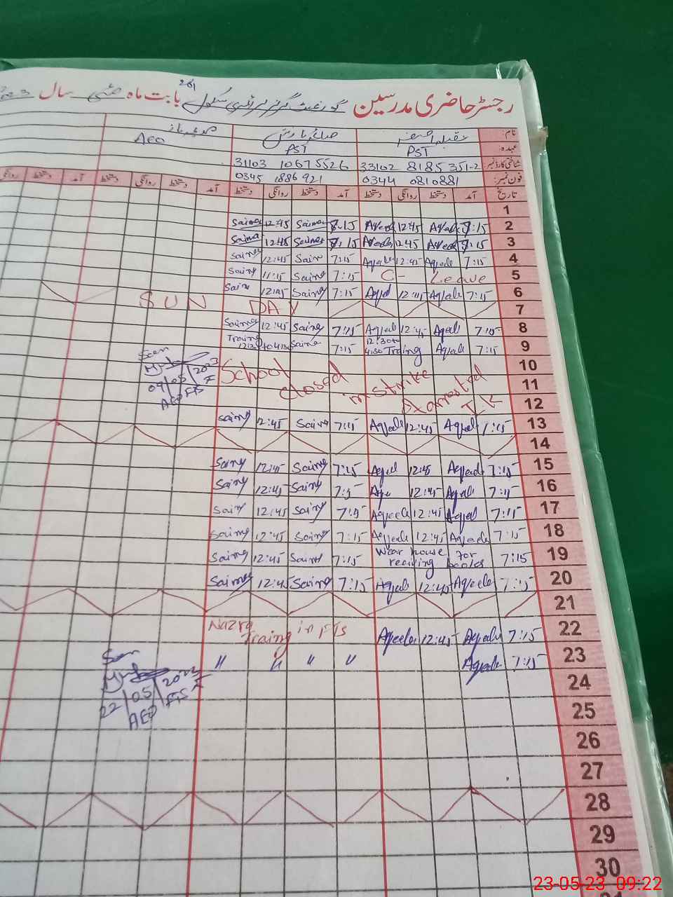 | Name: AQ**** AS**** Designation: (School Headmaster's/Headmistress's) PST Phone/Cell Number: 03**** |
