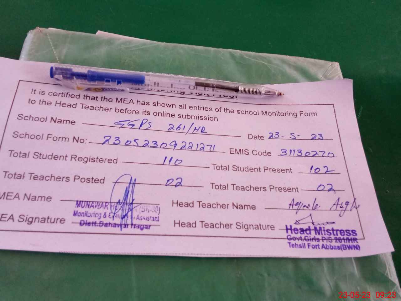 | EMIS Code: 31130270 | Name of School: GGPS CHAK NO. 261 HR | |||