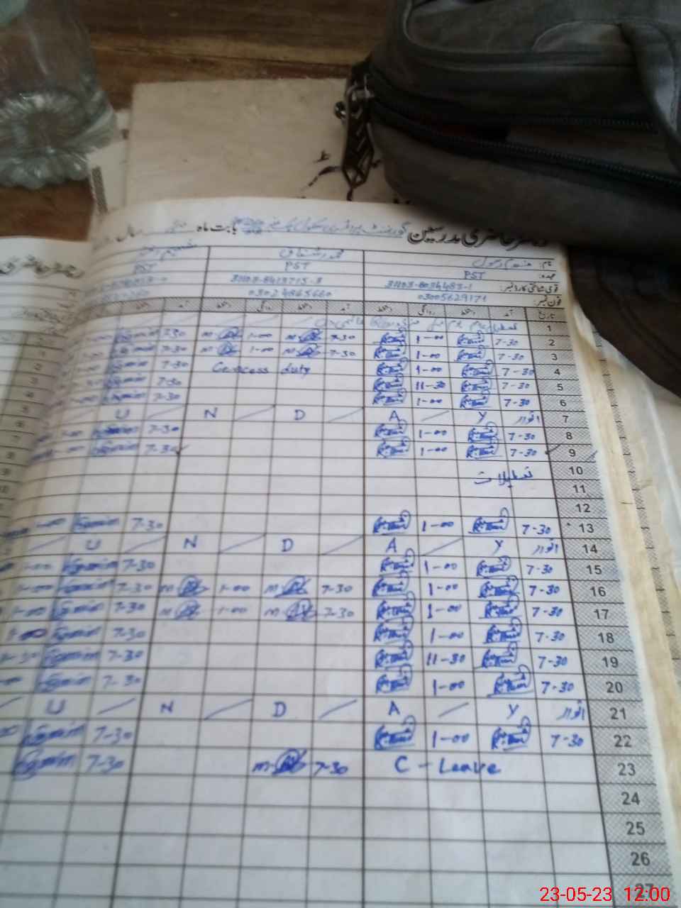 | CNIC | Full Name | Designation | R/C | Absence During Last Calender Month |