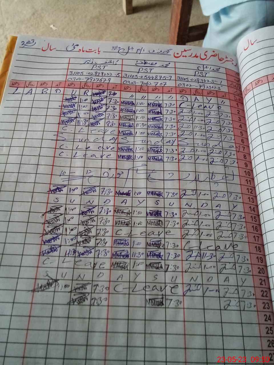 | CNIC | Full Name | Designation | R/C | Absence During Last Calender Month |