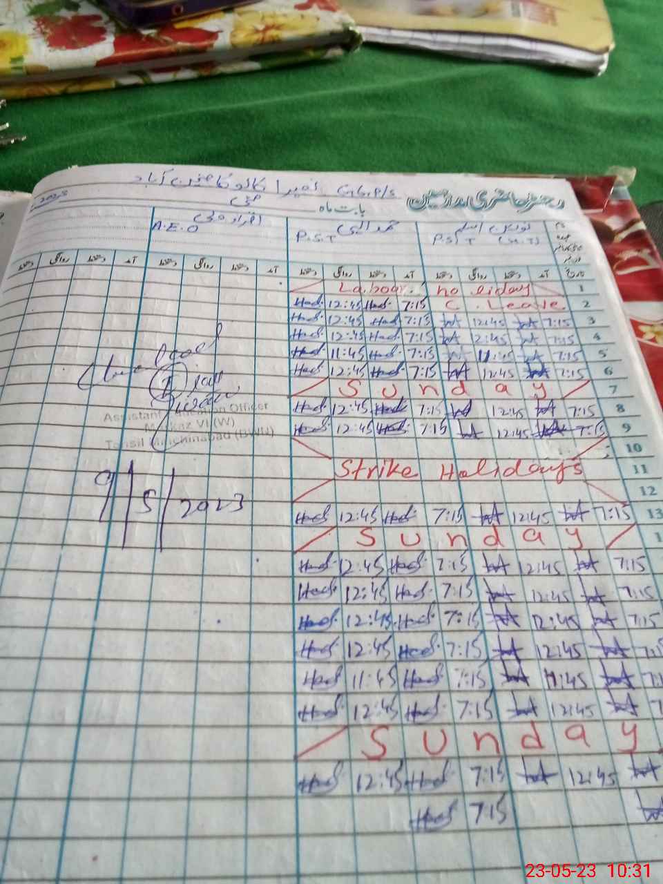 | CNIC | Full Name | Designation | R/C | Absence During Last Calender Month |