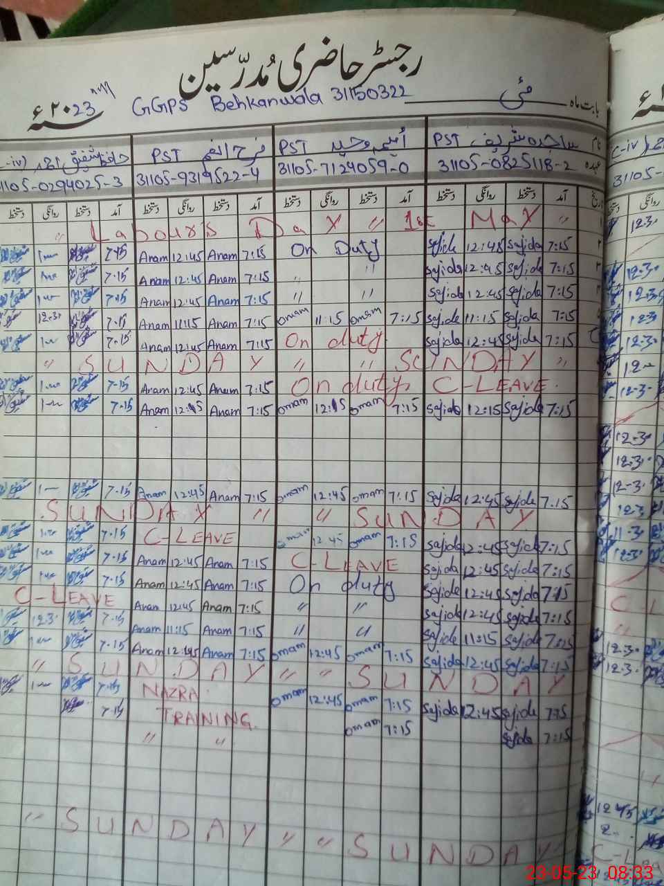 | CNIC | Full Name | Designation | R/C | Absence During Last Calender Month |