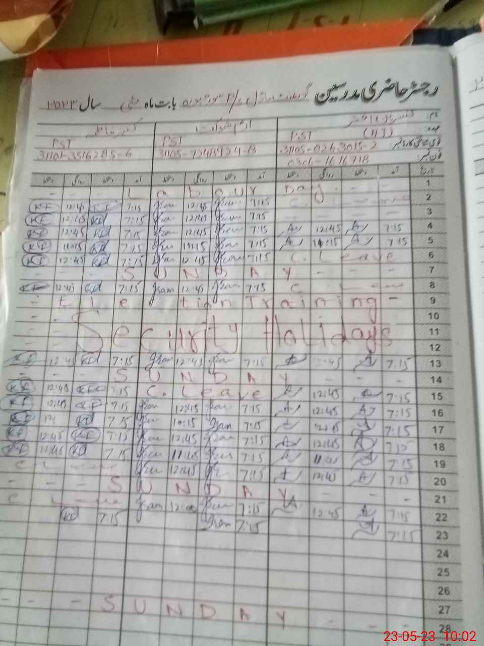 | CNIC | Full Name | Designation | R/C | Absence During Last Calender Month |