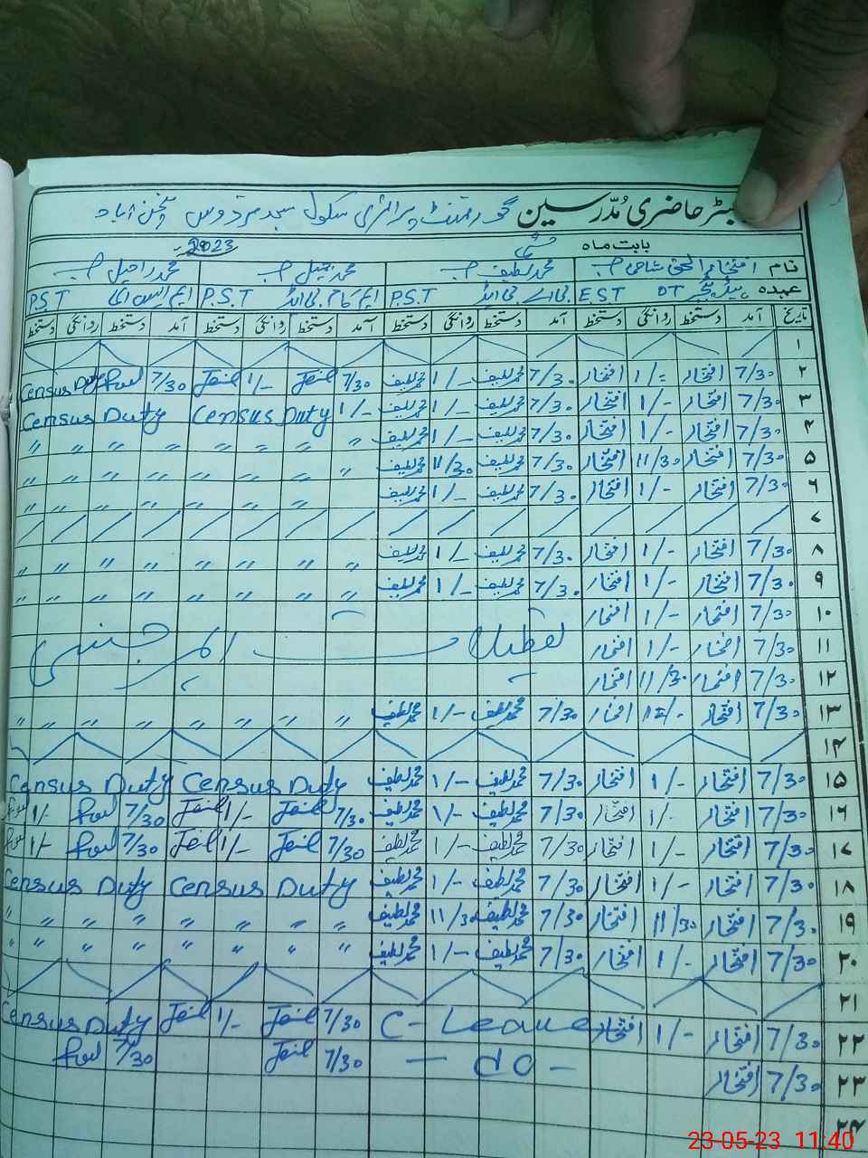 | CNIC | Full Name | Designation | R/C | Absence During Last Calender Month |