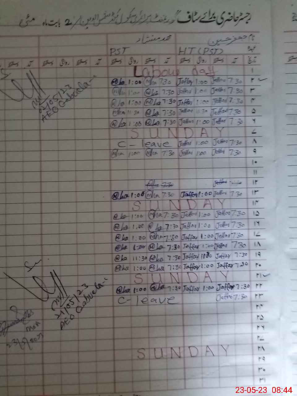 | Name: JA**** HU**** Designation: (School Headmaster's/Headmistress's) PST Phone/Cell Number: 03**** |
